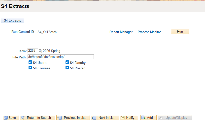 - Navigate to Menu > Stanislaus SA Custom > Campus Community > Interfaces